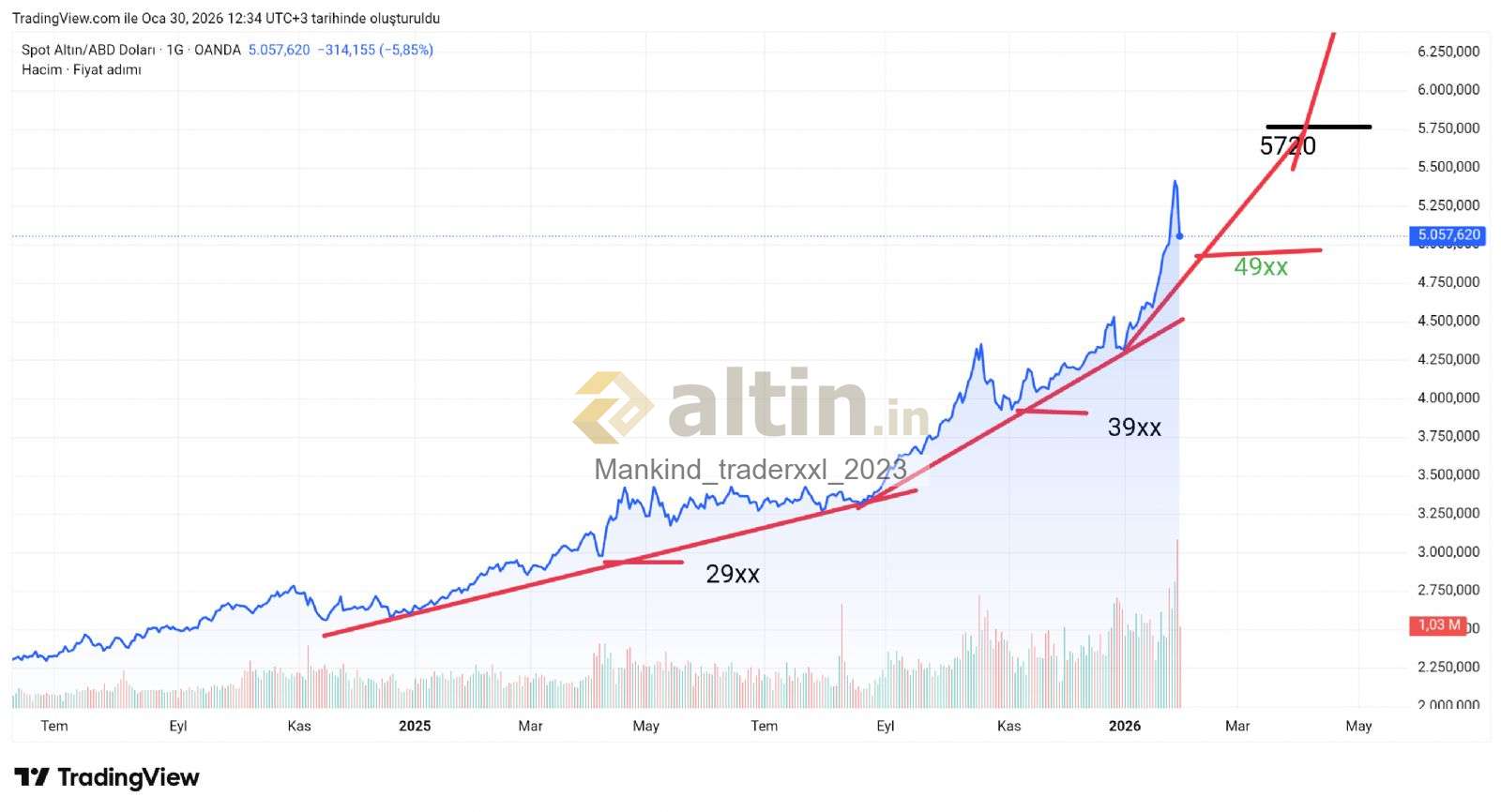 Ons için Mankind_traderxxl_2023 yorumu ()Canını sıkma alsatçı değilsen 4900 ekadar destek demiştim bu olacak dedik ve sürekli olacak 7200 dede olacsk ytd