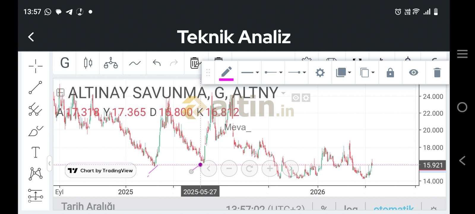 Bist (Borsa İstanbul) için Meva_ yorumu ()@MIZMIZ şu an kırmızı çizgi tam dirençte, çizdigim pembe minik çizgiler direnci gösteriyor orayı aşması lazım