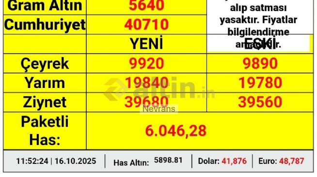 Gram Altın için Nevrans yorumu ()İzmir, de şu an paketli has Altın 6000 tl satılıyor