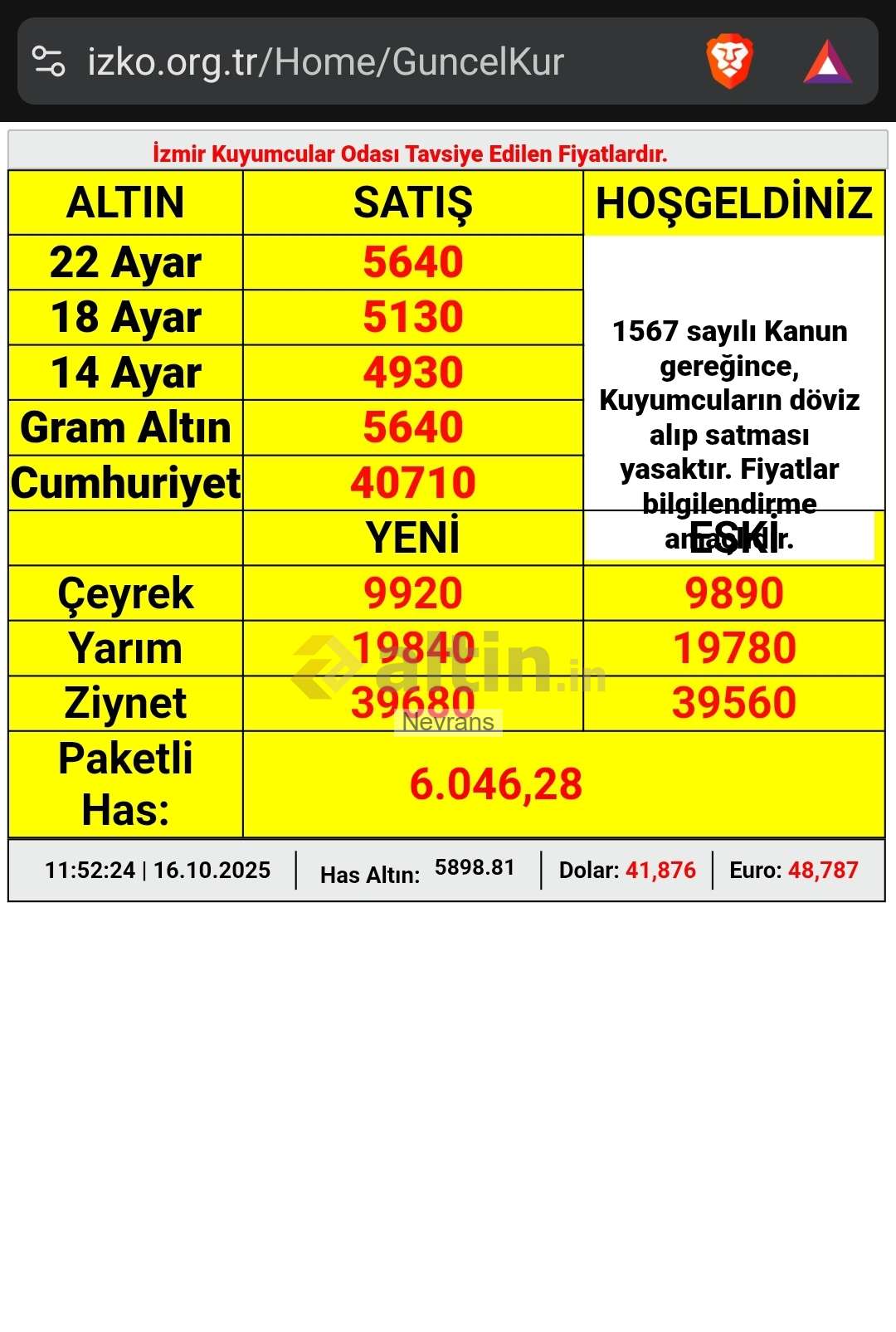 Gram Altın için Nevrans yorumu ()Konu: İzmir kuyumcular odası