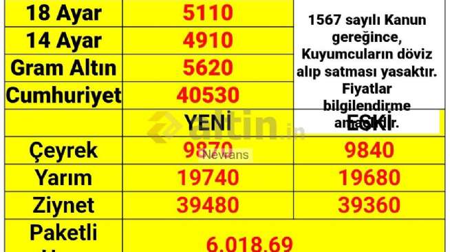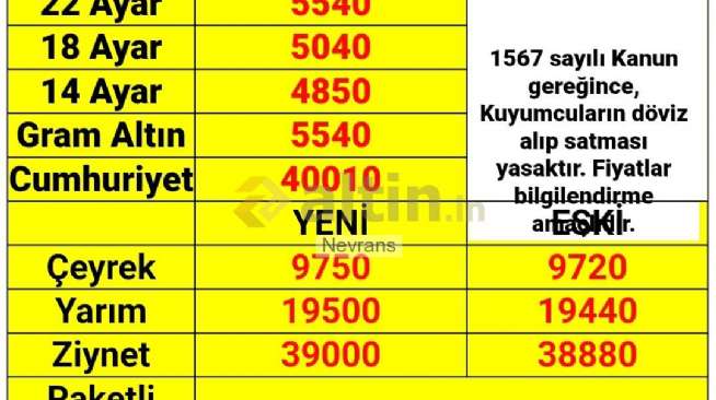 Gram Altın için Nevrans yorumu ()Konu: Şu an izmir kuyumcular odası fiyatları