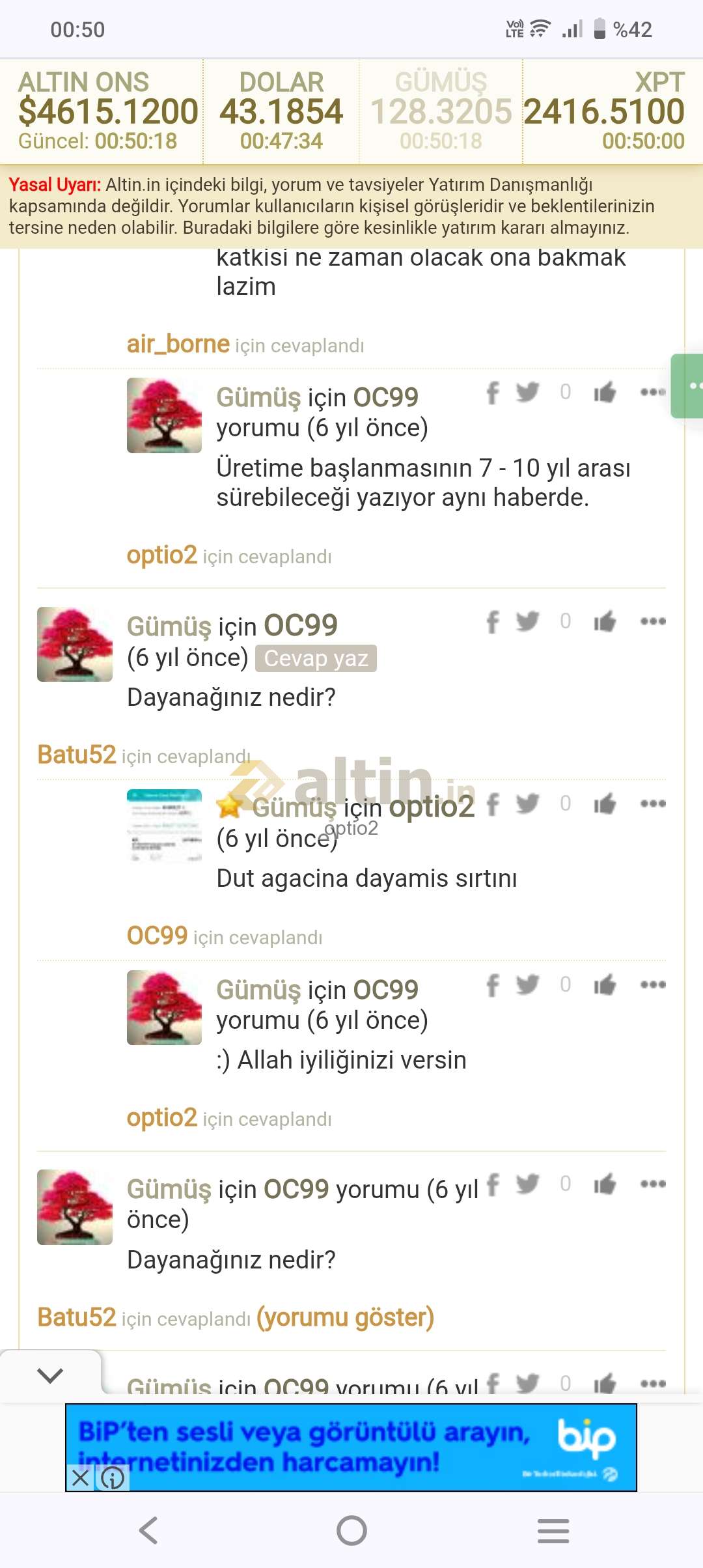 Gümüş için optio2 yorumu ()Bence kazma kürek gidiyor gibi:) :)