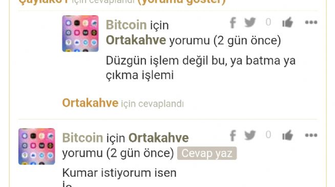 Bitcoin için Ortakahve yorumu ()Konu: Böyle işlem olmaz, kumar dedik,
