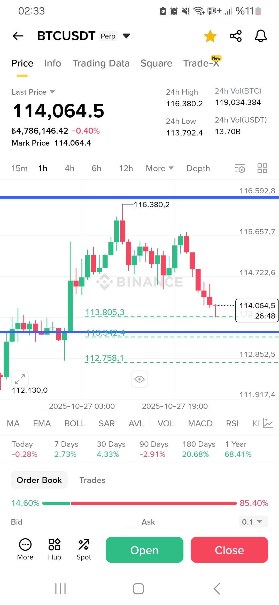 Bitcoin için Ortakahve yorumu ()btc 112800 long denerim uyanık iken gelir ise, 112300. e kadar dayanırım