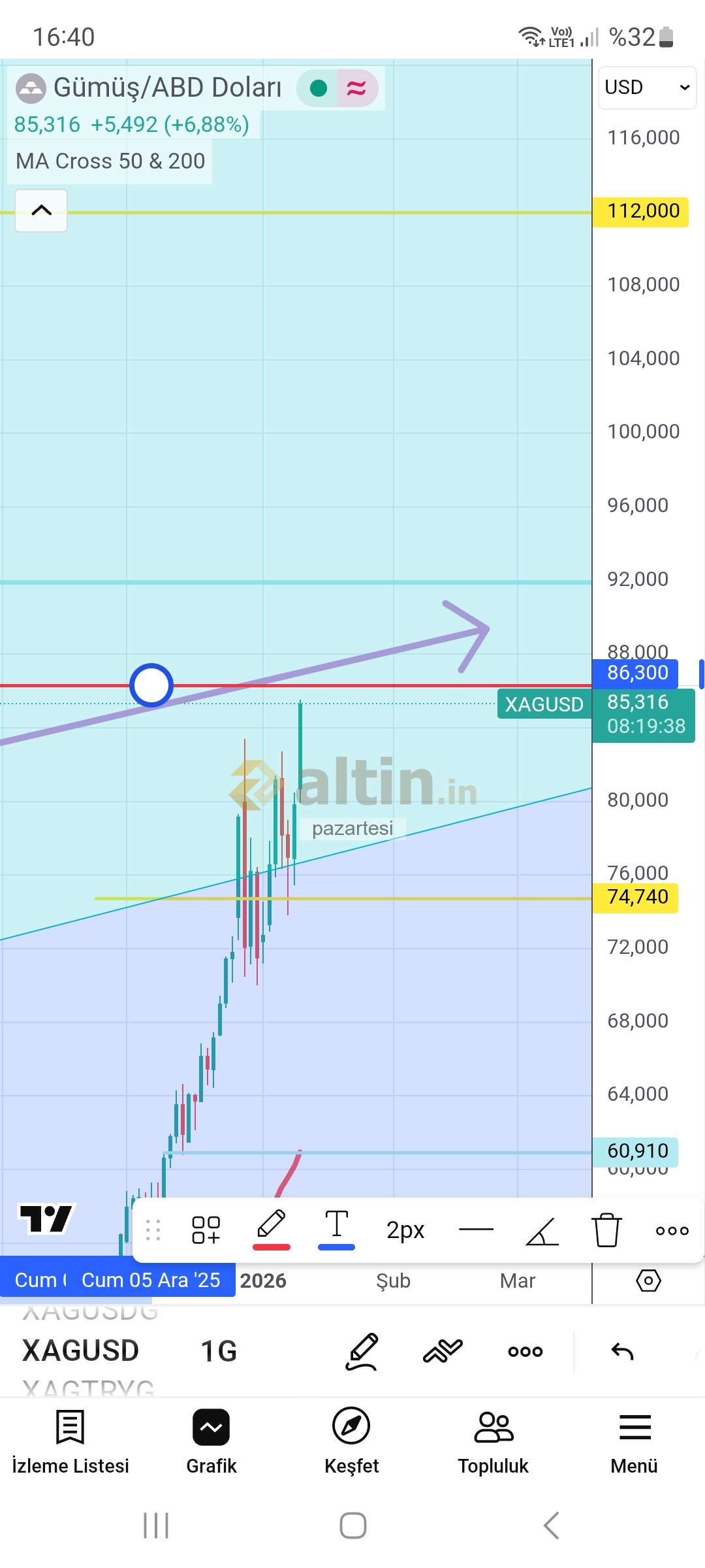 Gümüş için pazartesi yorumu ()Konu: #34453708 Grafik detay ve yorumları