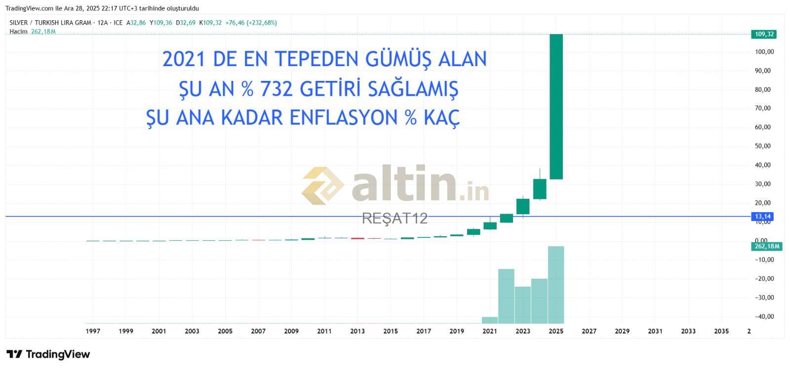 Gümüş için REŞAT12 yorumu ()Olabilir bir miktar daha aşağı sonrasında yukarı bir miktar tepki olması lazım. Geri satmak sartıyla. bir iki parça terste kalmayı goze alıp alına bilir. Şu ana kadar hiç bir düzeltme olmadı ve vakit alacak. Hâlâ 72 dolar seviyesindeyiz. Benim en az 2026 Mart kapanışını görmek gerektiği konusundaki görüşüm devam ediyor. Sonrasında üç aylık ve senelik kapanışları takip. Ytd