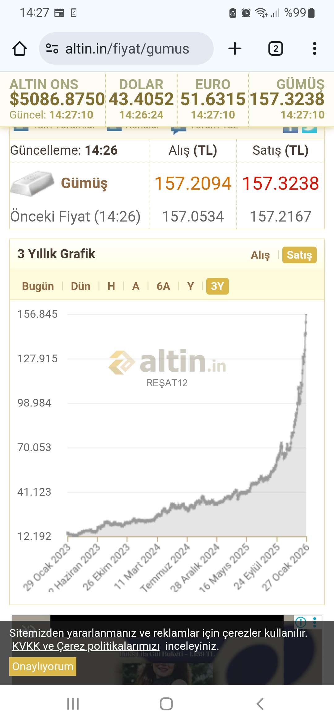 Gümüş için REŞAT12 yorumu ()Gercekten soruyorsan sembolikte aşaği dögru parça parca alma kâr yazınca da TL artırma ve fiyatta ciddi gevseme olursa da aşağı doğrü artan oranlarda alıp kâr yazdıkca satma sayfayı okumama zamanı. Ytd Fiyat 155 te ytd