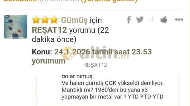 Gümüş için REŞAT12 yorumu ()Konu: 23.1.2026 eksi verillen yorum kayıtta