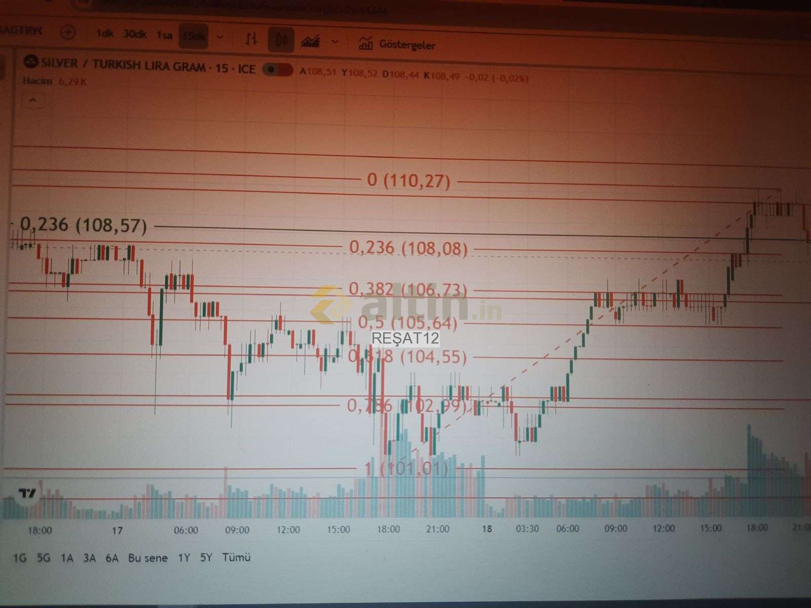 Bir süredir yaklaşık 108 TL altı negatif görünümünü sürdüren gümüş aldığı seviye ne olursa olsun çok sayıda zararkes ve zararı azaltma imkanı verdi ve verecek inşaallah. Ben de yavaş yavaş işlem miktarımı artırıyorum inşaallah. Zararkes yukarı tepkide ilk % 1 rastgele sonra tepki verdikçe % 2 3 4 toplam % 10 yapılıp % 90 a ilk etapta dokunulmaz kâr ettikçe yavaş yavaş oran artırılır. Alt kademelerde bedava gümüş eklemek ortada üste para alarak gümüş eklemek daha yukarı da sadece TL artırmak ve malı azaltmak şeklinde olur ezbere rakam tesbiti yapılmaz. Ben kâr alarak zararkese devam ediyorum. Ytd Bu paylaşım kendime ve üye olmadan beni takip edenlere. Ytd.