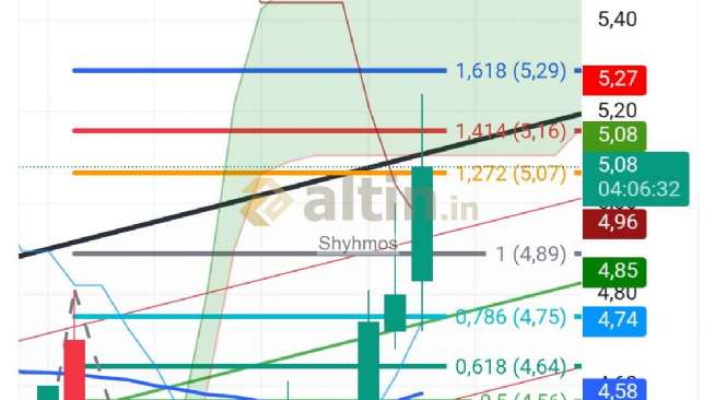 Ortalamalar geride, trend gücü 4h de güçlü günlükte istenilen seviyede değil fakat güçlenme yönünde öncü ile paralel devam etmekte şimdilik kanal üst direnci ile kumo bulutu alt direncinden red yemiş görünüyor; Üstüne atamaz ise güç toplamak için 5.07 tutunamazsa 4.89 seviyesine gider. Yukarı devam halinde kanal katlama ilk kritik 5.29 seviyesi ve hedefi. Buluttan çıkana kadar temkinli ve ayrıca kanal içinde hareket normaline devam etmek isterse kanal destekleri göz önünde bulundurulmalı.