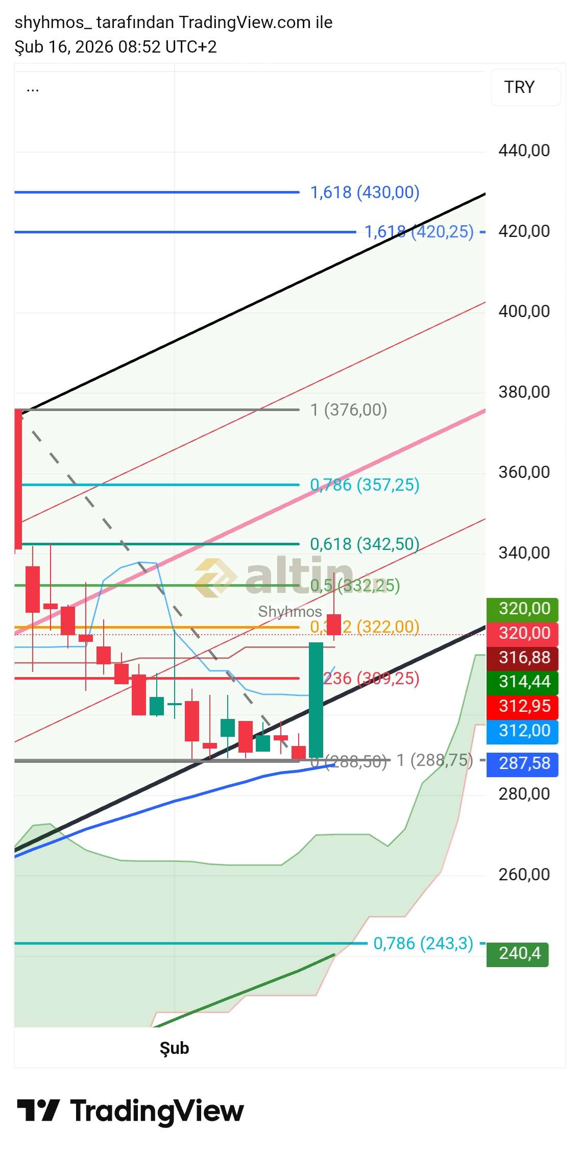 Geçen yılın son çeyreğinden bu yana trend dahilinde. Son tepe 288.75(retest) ten tepki almış ve kanal içine geri girmiş... aynı seviyede önemli 50ma da vardı. (50ma Altın da kapanış olumsuz sayılır ve bir parça sat şartlarından biridir.)