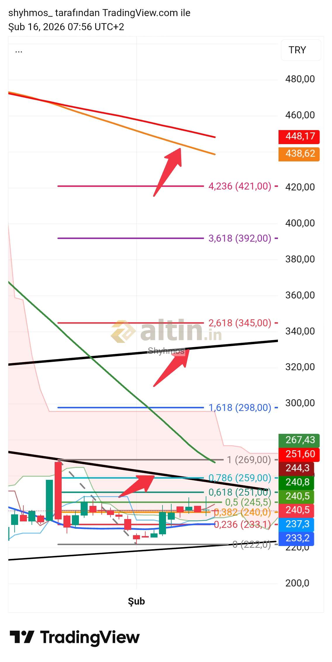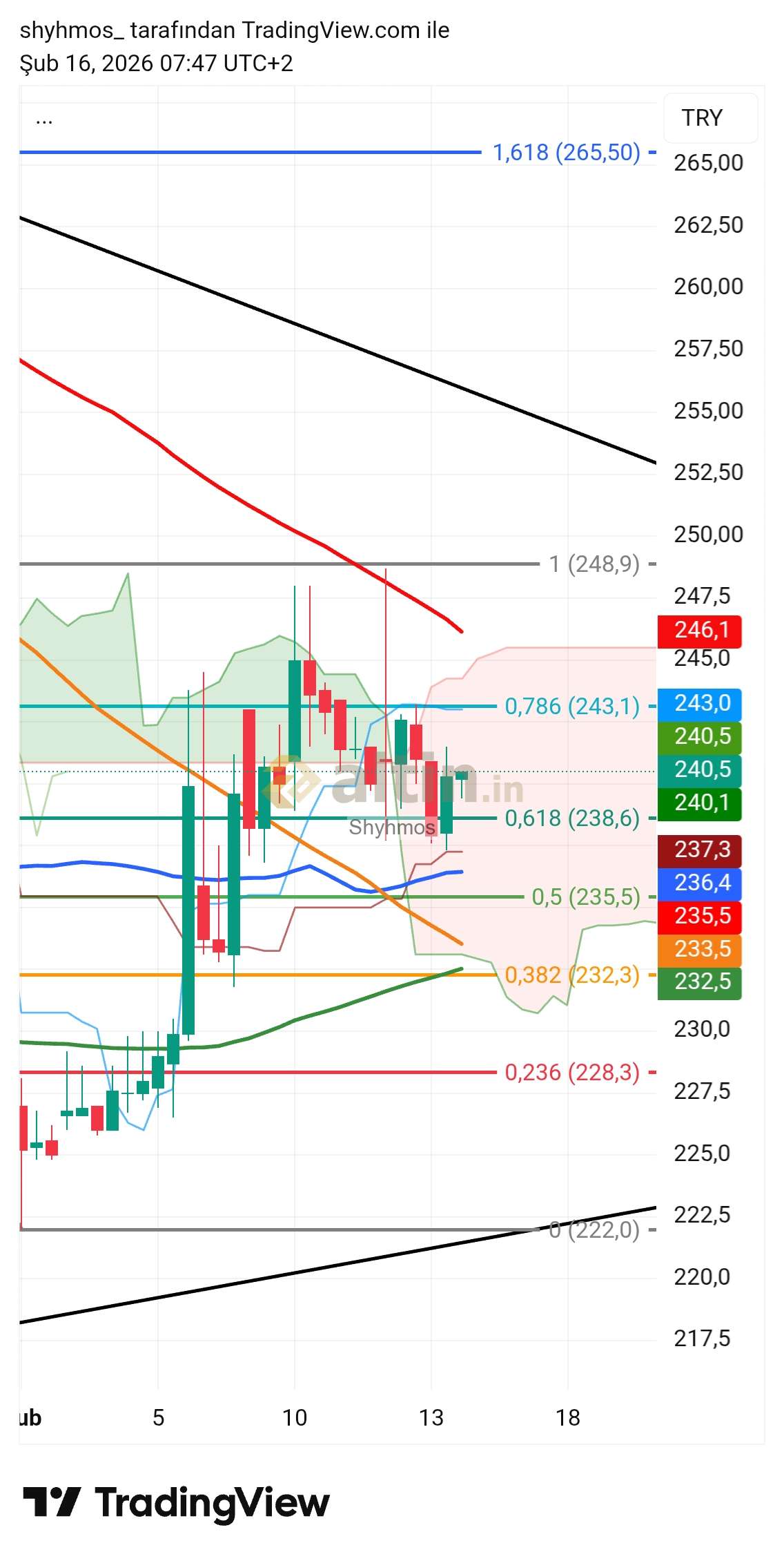 Şimdilik koma içinde kararsız bölgede ve ilk önemli 239 (altında sarmala devam) seviyesinin üstünde kalması ile geçmesi gereken ilk kademe 249.