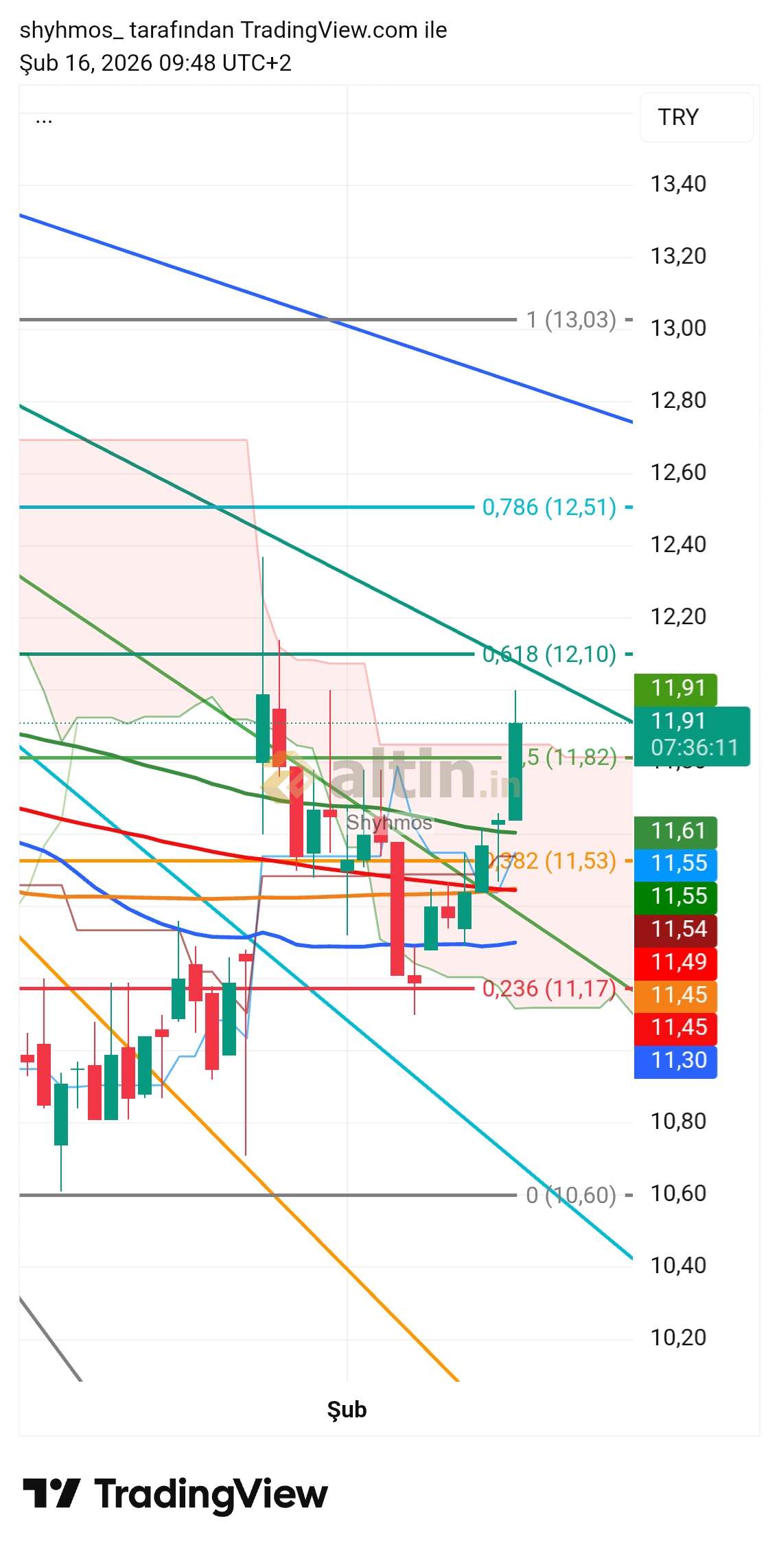 Günlükte 100ma yı da(11.51) geride bırakırsa ortalamalar tamam. Geriye önemli 12 seviyesi kalır bu seviye komayı da geride bırakır ki 12.37 hedefi için önemli eşiktir. Bu seviyeden sonraki tepeler ile önemli fib. Seviyelererine dikkat edilir.