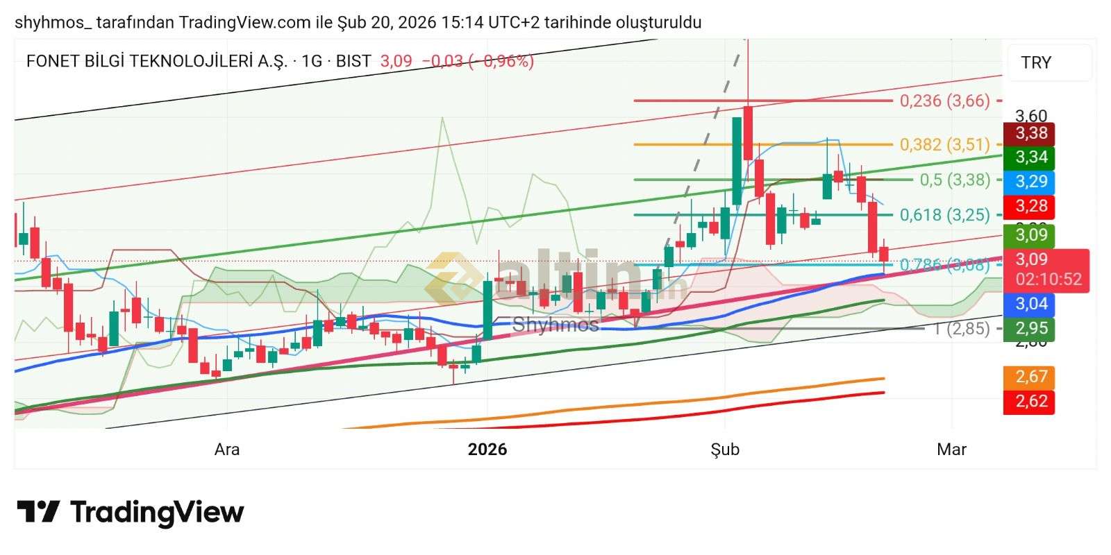 3.04 gibi bir trend desteği var güçlü durmasını beklerim. Aynı seviyede 50ma var yani burdan aşağısı "sat şartları açısından" teknik olarak kritik.. altında bir parça sat manasına gelir. Burdan da aşağı İnerse koma da dar bir buluta sahip buda çok destek olamaz gibi; altında üç0ncü sat şartı gerçekleşmiş olur.