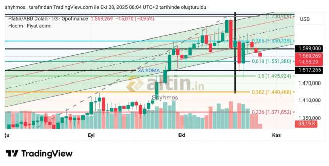 Düşük bir hacimle düşüyor bu iyi. Son trende göre çekilen fib 0.618 e dokunup geri döndü. İşler değişmez ise buralarlardan bir tepki beklenebilir.