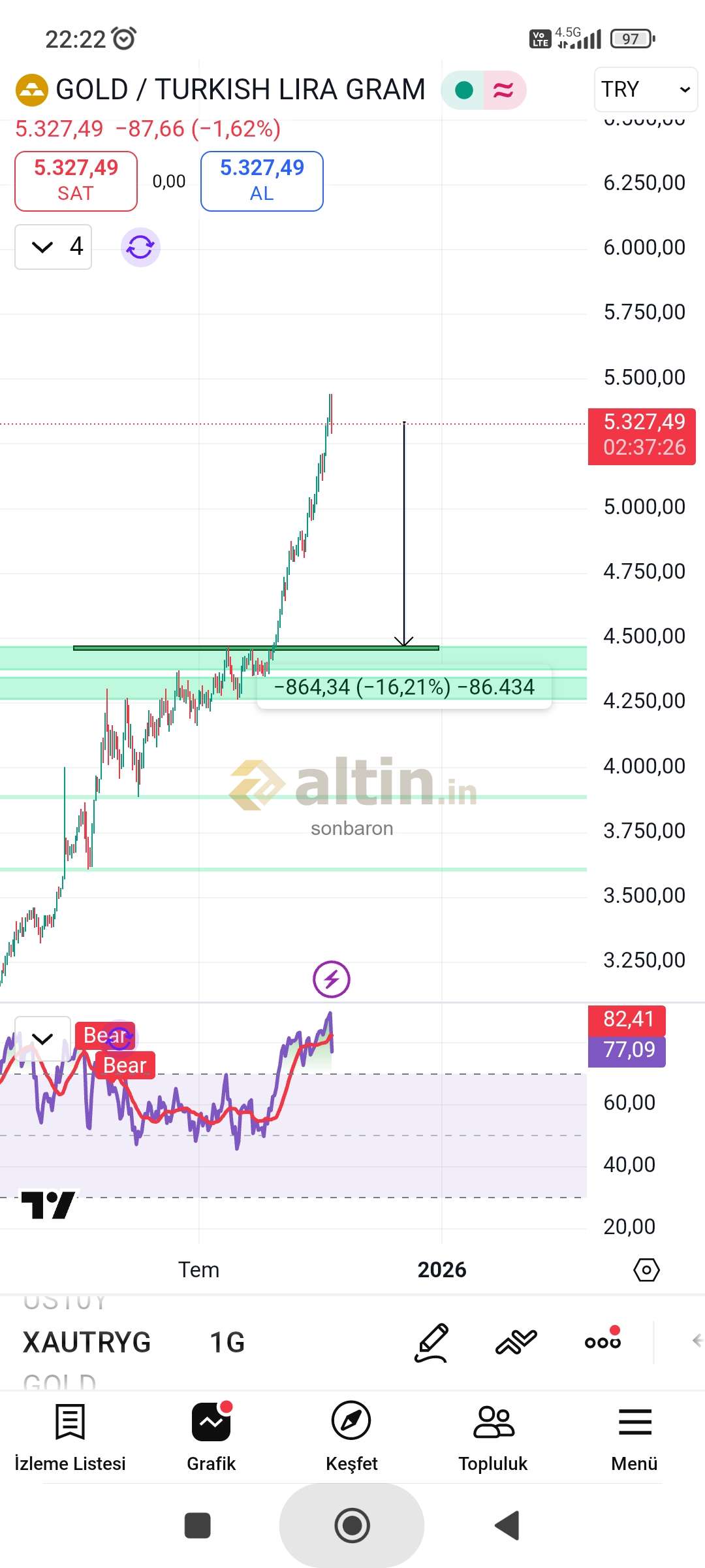 Gram Altın için sonbaron yorumu ()4500 den başlarım