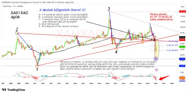 Haftalık 27 Şubat kuvvetle muhtemel (Orta- uzun vade) önümüzdeki hafta çok ama çok önemli, hem aylık kapanış var, hem de gerçekten çok önemli seviyeler olan 20.75 bulut 20,55 233 haftalık ortalama altın oran 0.618 desteğimiz 20.26 desteği altında üst üste günlük ve haftalık kapanışlar gidişatı derin düzeltmeden öteye taşıyabilir, belirtilen destekler kırılmadan acilen bu hareketli ortalamaların üzerine atmalı...