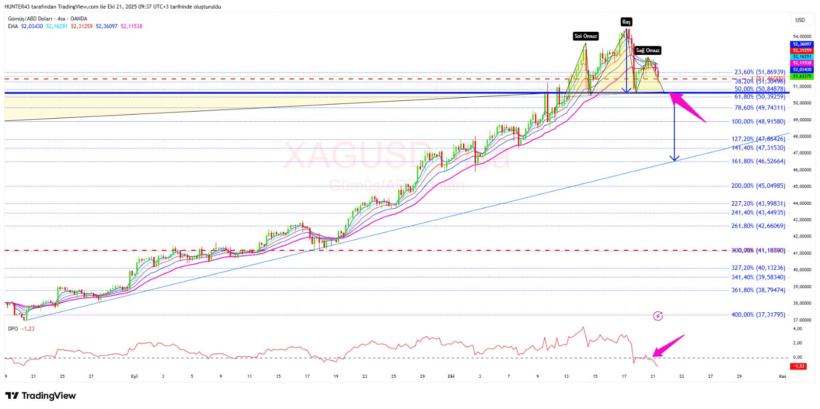4,045- usd burası aynı zamanda kısa vade güncel ters flama alt band desteği.