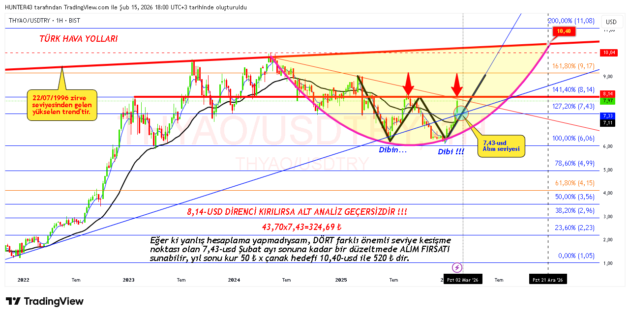 Daha evvel alt bağlantıda usd bazlı grafiği bulunan THYAO'nun, TL bazlı günlük grafiğidir.