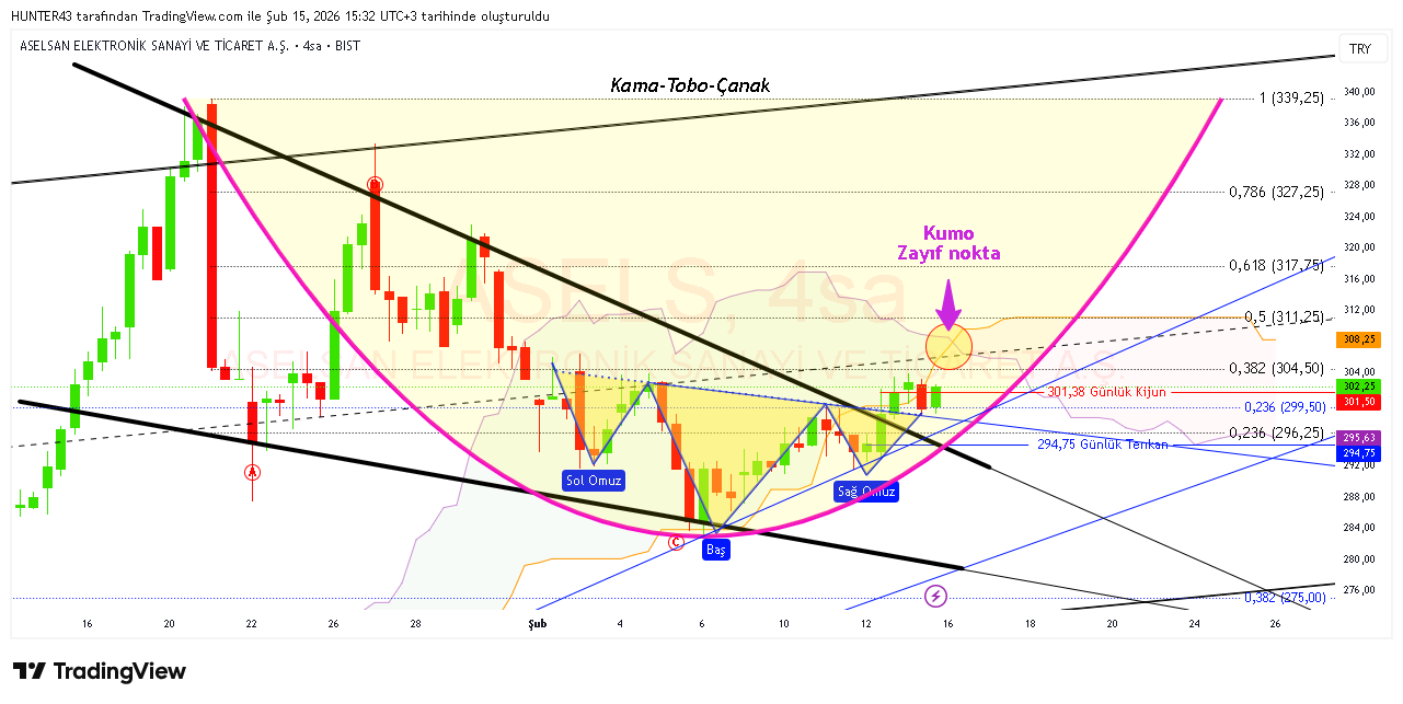 293,75 desteğinden tepkiyi aldık, 4 saate 301,88 direncine takıldık, kırdık mı 305 direncindeyiz.