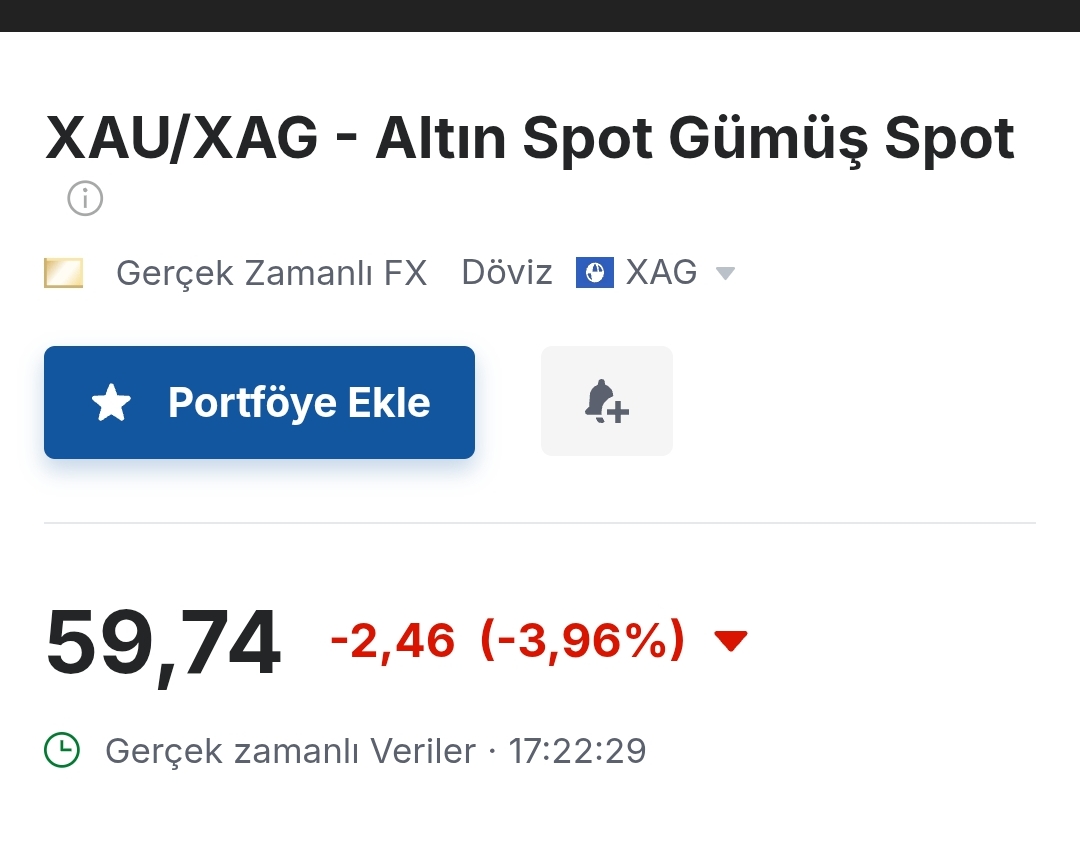 Gümüş için Tekirdağlı_Murat yorumu ()Rasyo gördüğü en dip 43.34 de olsaydı gümüşün onsu 115.70 lerdeydi şuan
