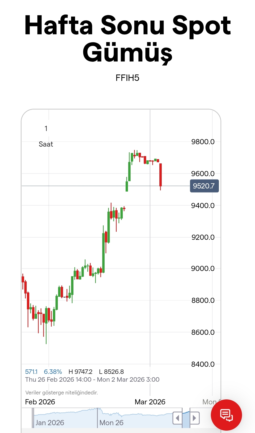Gümüş için Tekirdağlı_Murat yorumu ()Büyük balıklar bu riski hafta sonu fark ettikleri için pozisyon alarak girdiler bu hareketlilik ondan olmalı çünkü ay sonuuna kadar süre tanımışlardı buda bu hafta doluyor düğmeye basıldı pazar gecesi belki hareket edebilir YTD