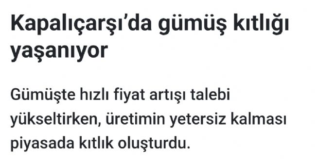 Gümüş için Tekirdağlı_Murat yorumu ()Konu: Kapalı Çarşı da Gümüş kıtlığı varmış