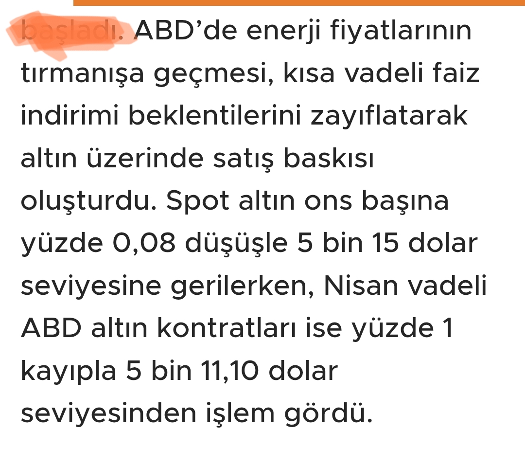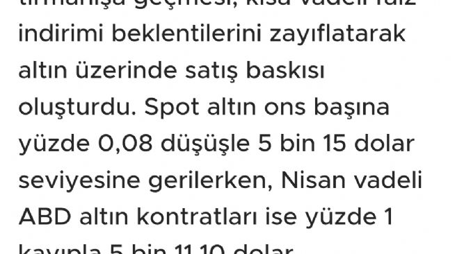 Ons için Tekirdağlı_Murat yorumu ()Yani bazı arkadaşlar sen dedin ben dedim tartışmasını bence yapmasının pekde anlamı yok piyasacılar yine belliki oyun peşinde bakalım nereye kadar indirecekler nerde bitecek bu kumar eninde sonunda bu metaller yükselecek nereye kadar sürdürülürse artık