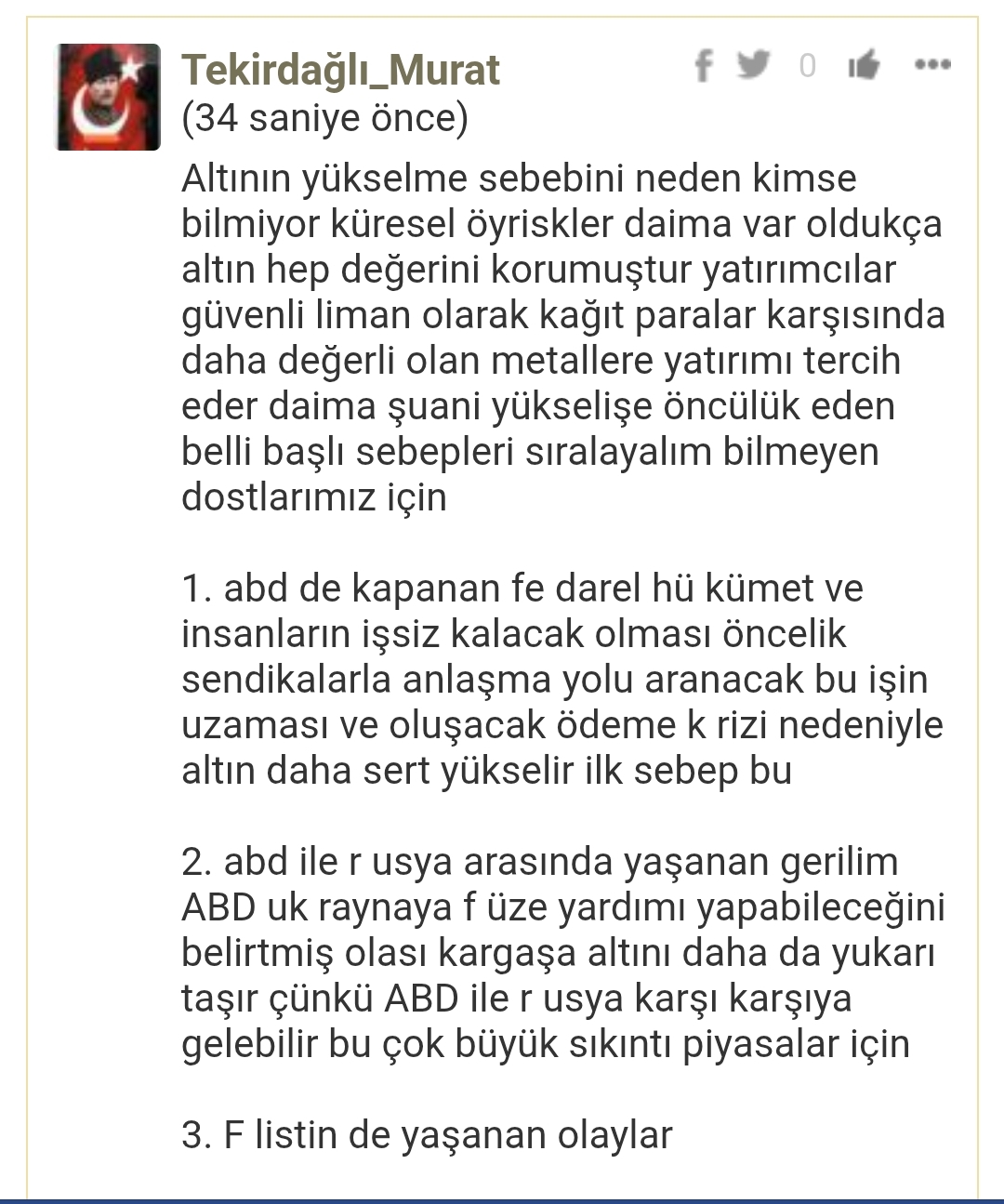 Ons için Tekirdağlı_Murat yorumu ()altın neden yükseliyor diyen kısaca özet