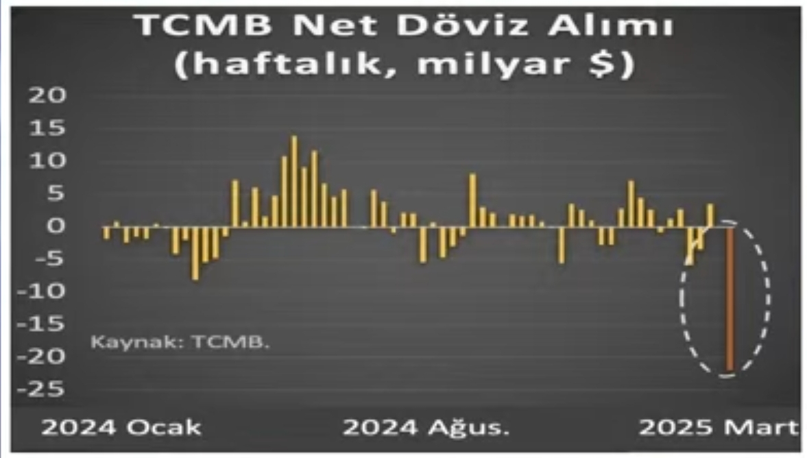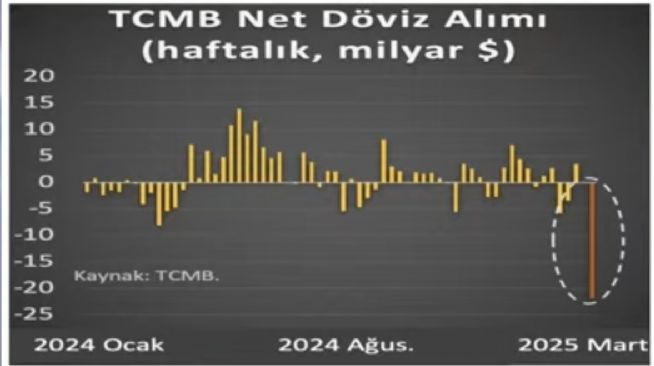 TCMB bu hafta dövizi frenlemek için tam 27 milyar dolar net döviz satışı yapmış pazartesi salı ve Çarşamba sadece pazartesi yaptığı satış 12 milyar dolar olmuş