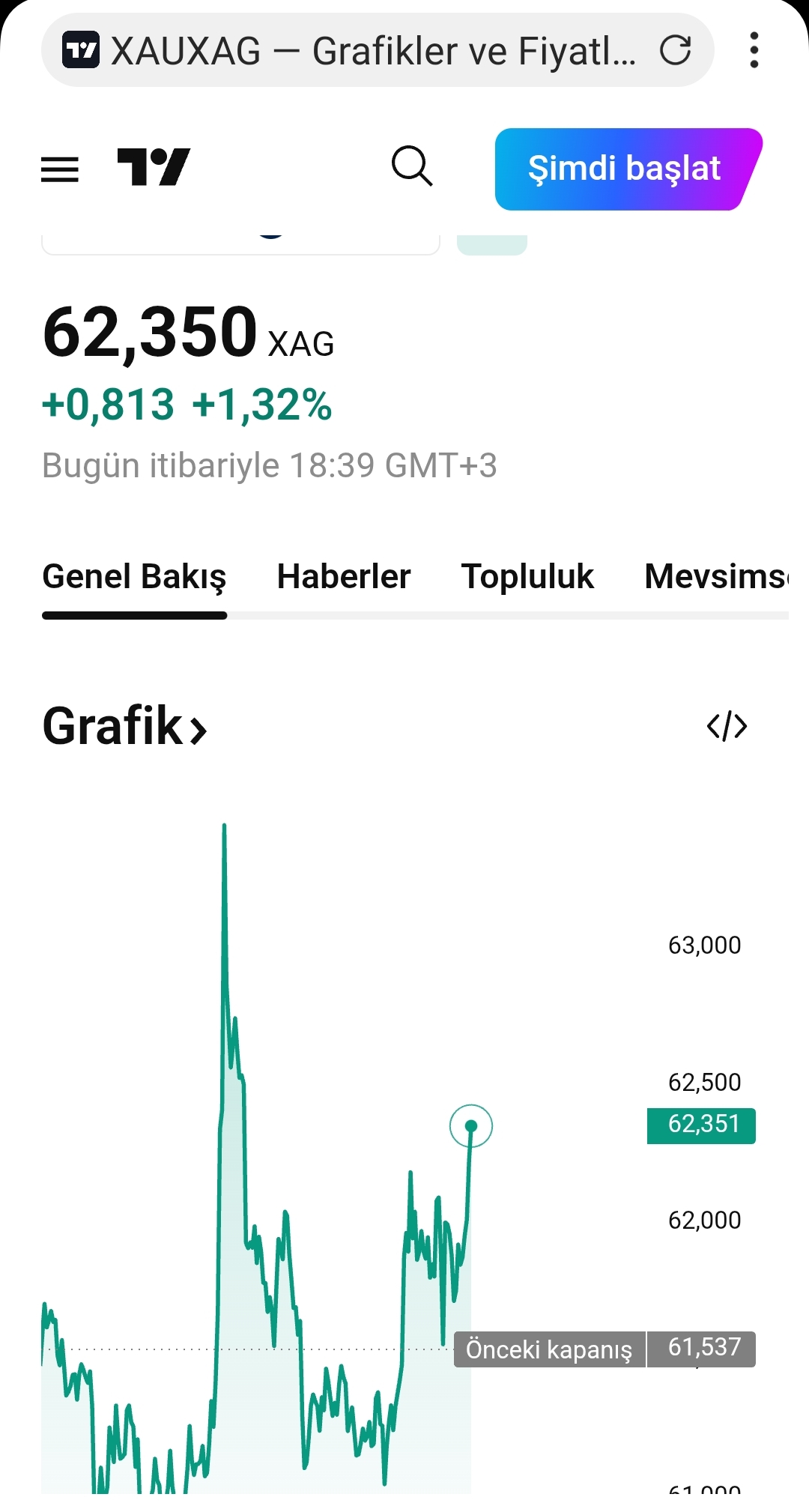 Gümüş için Tekirdağlı_Murat yorumu ()dolar ayağı da elbette önemli biraz salınım yapsalar gümüş TL bir anda bir miktar yol alır daha metallere dolar ayağındaki katkı yansımadı gözle görülür dolar günü geldiğinde istenilen değere geldiğinde elinde Altın gümüş ve bir ayağı dolara bağlı enstrüman lar ciddi pirimlenecek bakalım o günleri bu senede görmezsek 2027 de mutlaka göreceğine inanıyorum ben