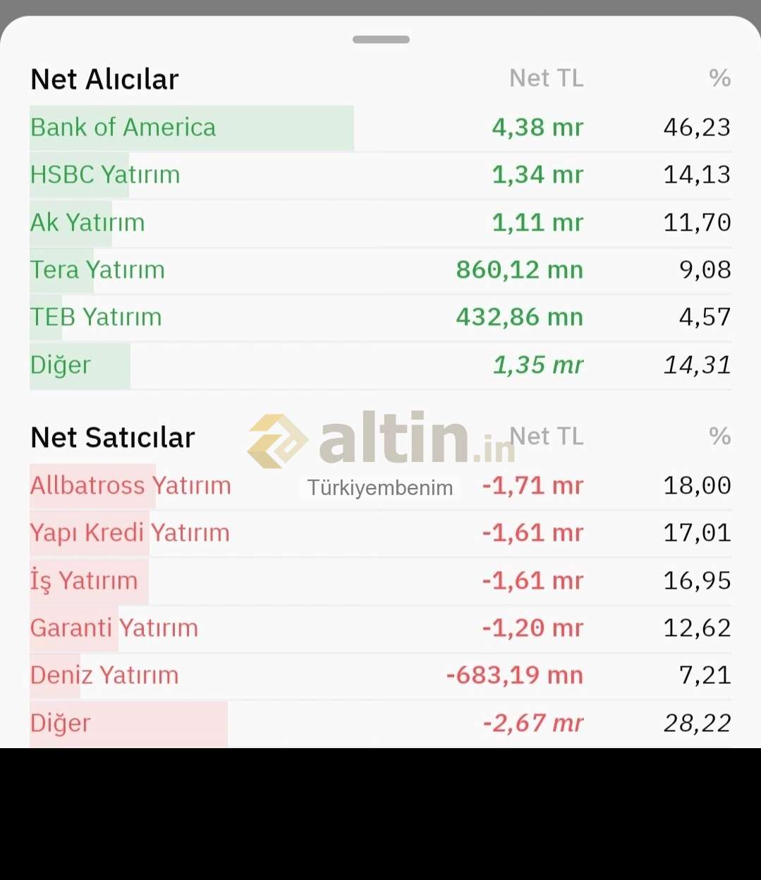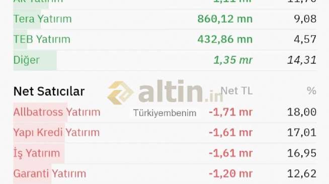 Bist (Borsa İstanbul) için Türkiyembenim yorumu ()Geçen hafta olduğu gibi Bank of America bugün de her yerde ilk sırada satıcı