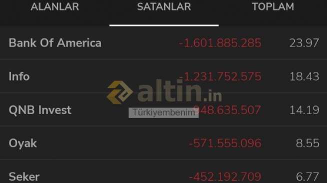 BOFA 993 Milyon satışta, 919 Milyon satışı thyao