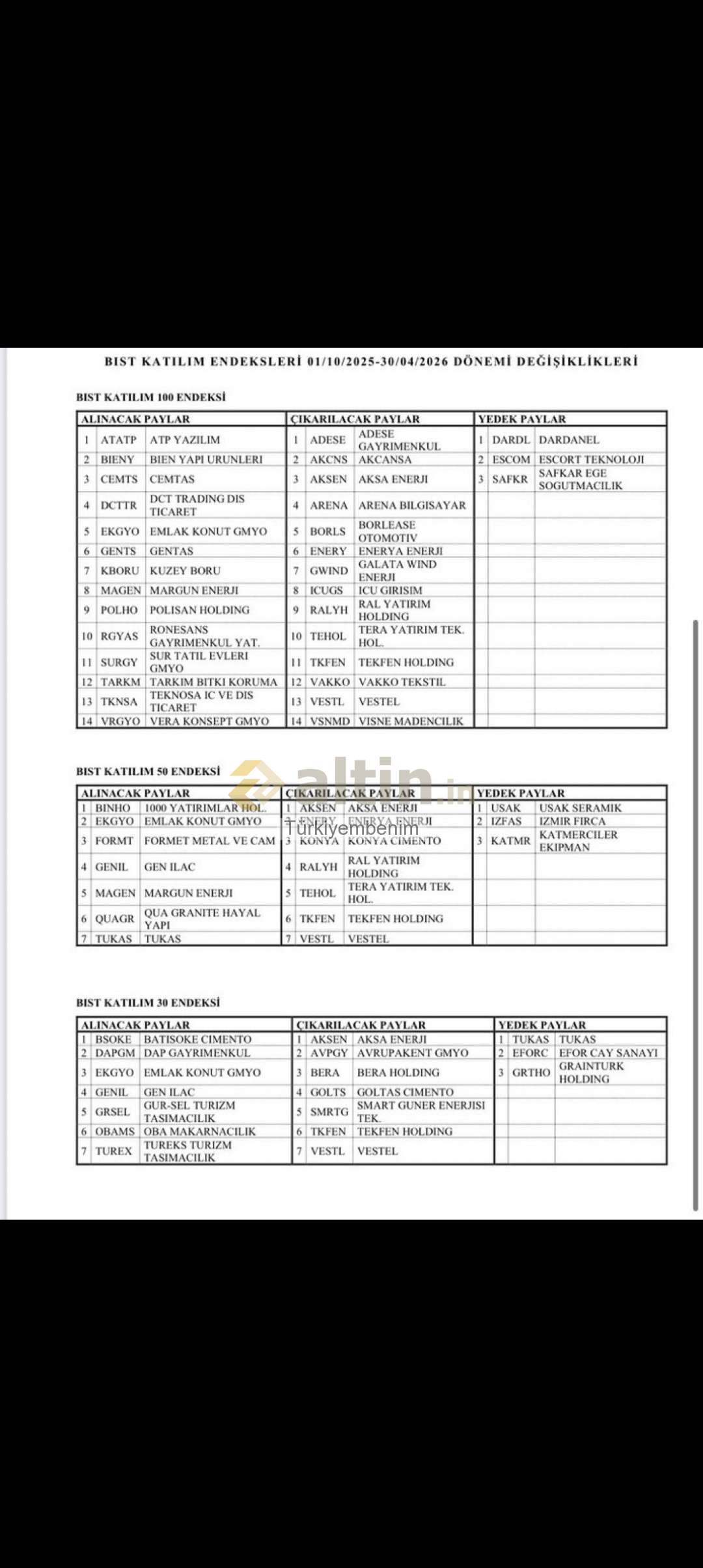 Bist (Borsa İstanbul) için Türkiyembenim yorumu ()Borsada gün sonu