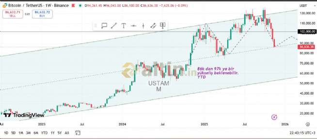 Bitcoin için USTAMM yorumu ()kanal desteği 86.5k ydı. desteği test etti şimdi kısada bir yükseliş beklentimiz vardı.