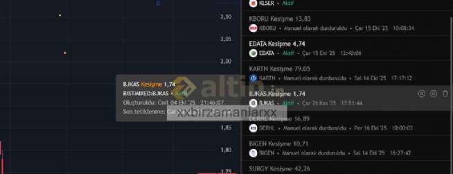 alarmları biraz üstten oluşturuyorum hazırlık için ama hiç bir alarmı zamanında alamadım. hep erken başka hisseler aldım.. terste bırakmadan yukseltmiyor.. formasyonu bitenin en kötü ihtimal hızlıca az yukseltip tekrar düşürüyor formasyonu farklılaştırıyor..((