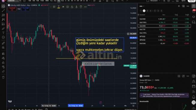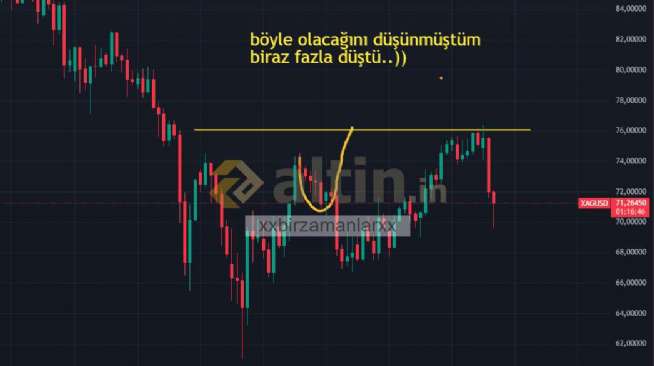Gümüş için xxbirzamanlarxx yorumu ()grafikte biraz uğraştırdı ama 76 ya yukselip tekrar düşeceğini bilmiş olduk.. kesin çıktım.. ))