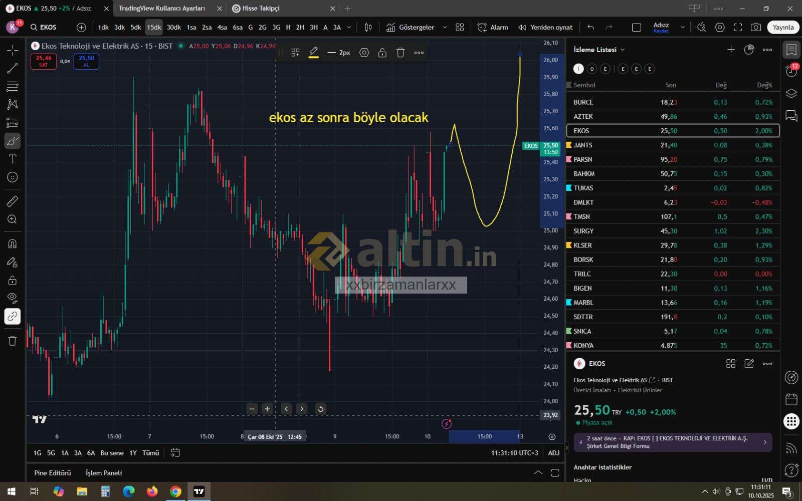 15 dk önce ekos oraya çıkıp düşecek dedim. dediğim yere önce yukseldi sonra çizdiğim yere kadar düştü. sonra tekrar çizdiğim yere kadar yukseldi.. buda son hali...