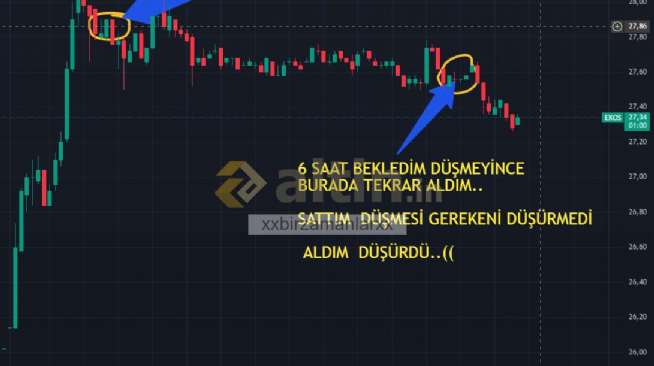 hissede yukseliş devam edeceğini düşündüğüm için tekrar aldım..26,50 kadar düşüş bekliyordum o yüzden düşüşünü önemsemiyorum..ama düşmesi gereken hisseyi neden 6 saat boyunca yerinde bekletiyorsun . alır almaz nasıl düşürüyorsun..((