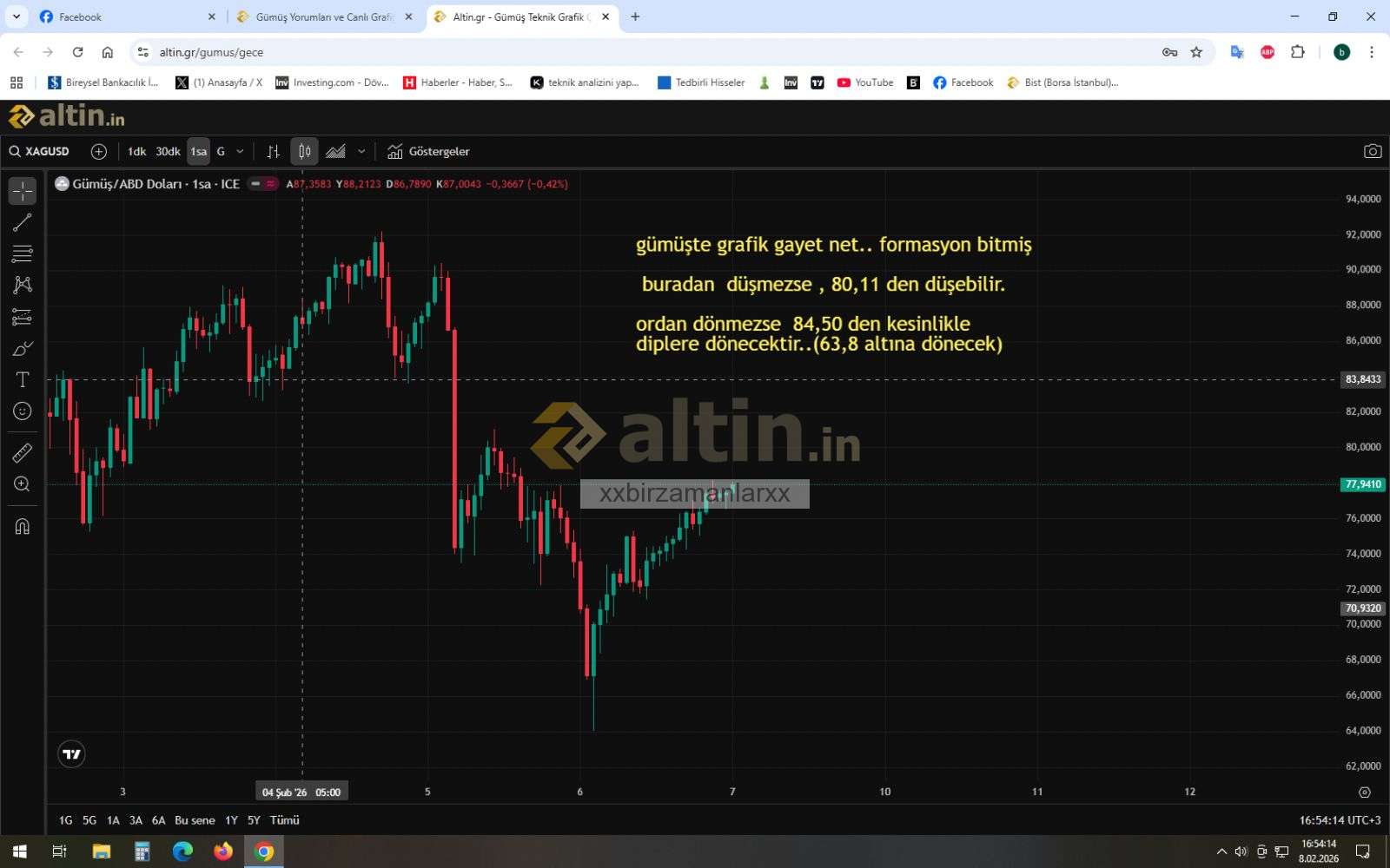 Gümüş için xxbirzamanlarxx yorumu ()gümüş buradan biraz yukselir.