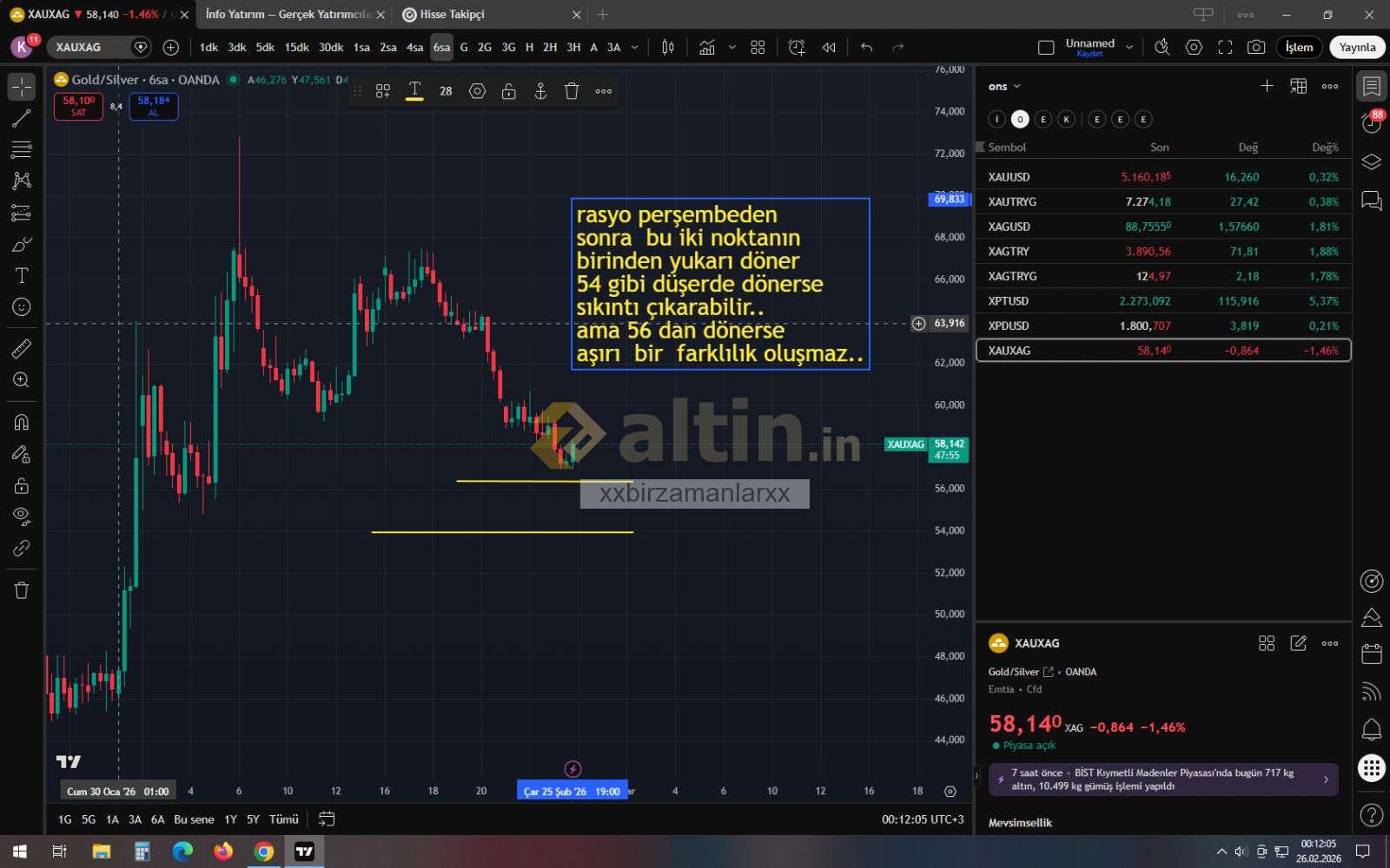 Gümüş için xxbirzamanlarxx yorumu ()altın ons ile ne kadar yukarı götüreeceklerini bilmedğimiz için rasyo ile gümüşü tahmin etmek güçtü..