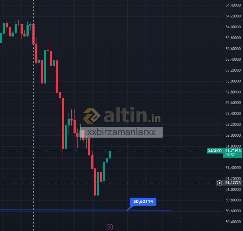 Gümüş için xxbirzamanlarxx yorumu ()düşecekmi yukselecekmi bilmediğimi söylemiştim.. hala bilmiyorum.. ama takibimiz şöyle olmalı.. buradan dönüp 50,80 civarına kadar yukselirde tekrar 48,50 ye düşerse formasyon biter.. tekrar yukarı döner. direk düşüş devam ederde 48,50 Altın a atarsa neticede düşüş dahada derinleşir... takip..