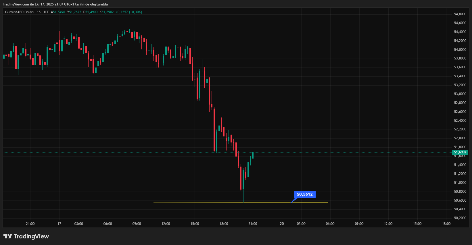Gümüş için xxbirzamanlarxx yorumu ()şuana kadarki düşüşlerde kısada( saatlik grafiklerde ) hep teknikte oynayarak yukselttii. yine oynarmı bilmiyorum... ( tekniği bilmiyorsanız yada kendi bildiğiniz gibi sanıyorsanız oynayıp oynamadıklarını bilemzsiniz o ayrı). normlade kısada düşüş devam eder.. ancak çok değil. muhtemelen az yukardan dönüp 50,45 civarına düşer sonra az yukarı yapıp tekrar 50 civarına düşer.. muhtemelen kapanışıda 51 civarında yapar. vakit geçirir yani..