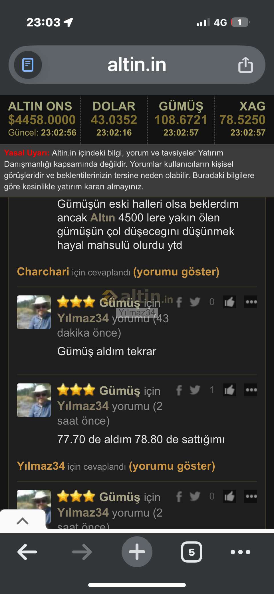Gümüş için Yılmaz34 yorumu ()77.70 de paylaştım alım yaptığımı yıne gelebılır oralara