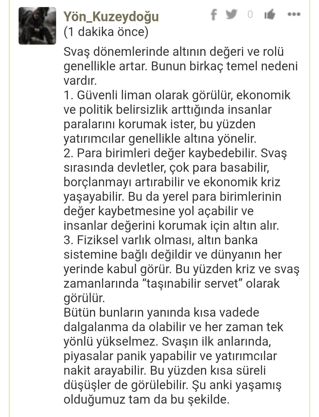 Gram Altın için Yön_Kuzeydoğu yorumu ()Hayırlı akşamlar çok değerli hocam, müsaadeniz olursa sayfalarınız memnuniyetle ziyaret edilecektir. Saygı ve selamlarımla. @zekamerak @deLiogLan_ @Mekanize_15 @Yön_Kuzeydoğu