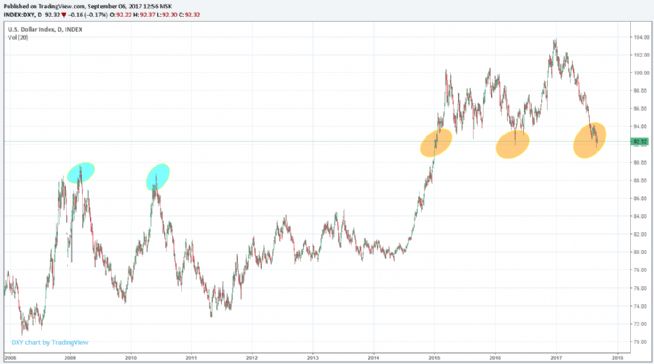 1. )doların ani yükselişler gösterip (En son gördüğümüz 4, 90'lar gibi) geri döndüğü,