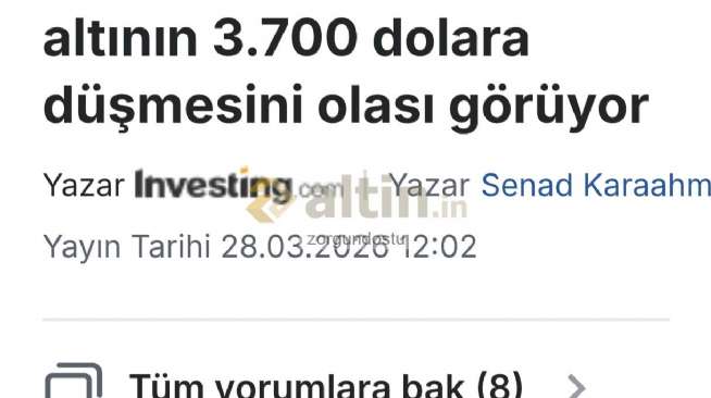 Gram Altın için zorgundostu yorumu ()Valla hocam zaten evler yuzde yirmi altina satiliyor su an kredilerden ve faizlerin yumsekliginden ama havada kapanda yok 2 yildir ilanda duran ve cok dusuk fiyatta evler var ama ne arayan var ne soran